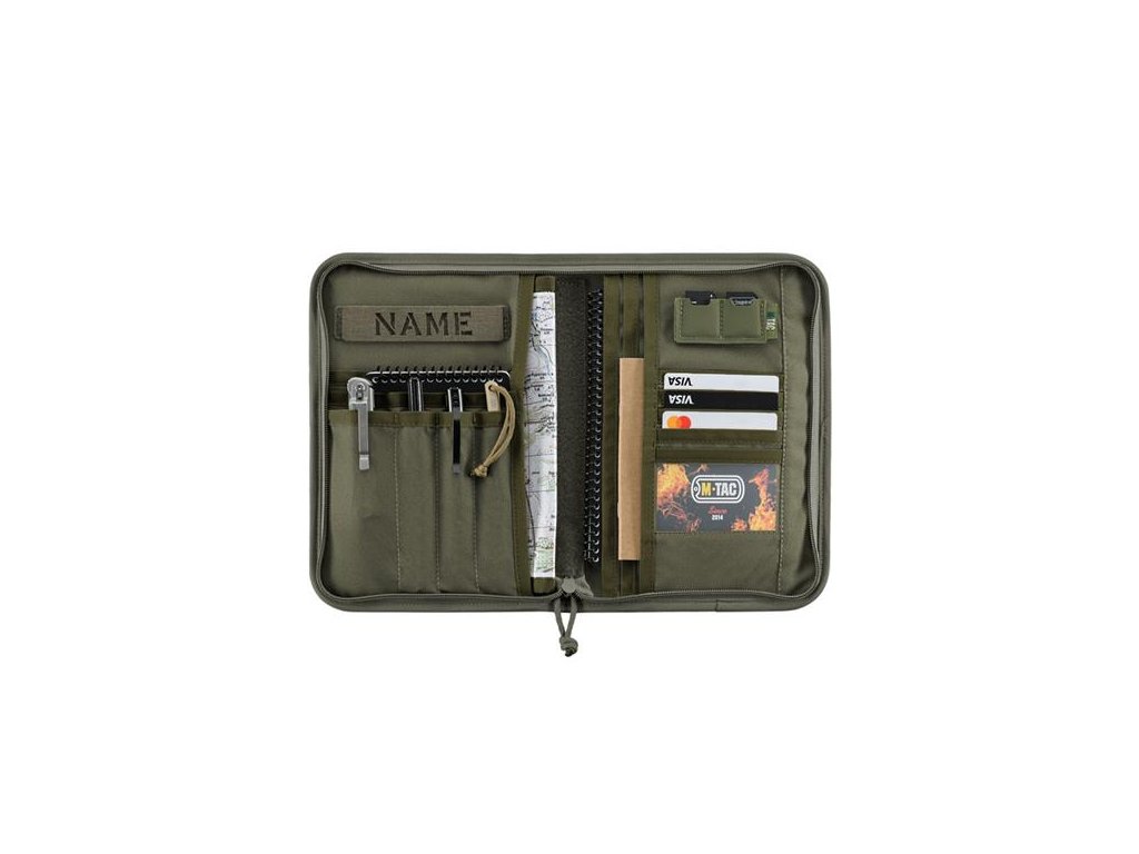 Praktický organizér na psací potřeby a EDC vybavení. Uložení bloků, tužek a propisek, organizer na karty, hypalon mini kapsy na sd karty. Vinylový vyjímatelný obal na mapu o velikosti A4. Zapínání na YKK zip. Z vnější strany velcro pro nášivky nebo označení. Uvnitř velcro na jmenovku.
