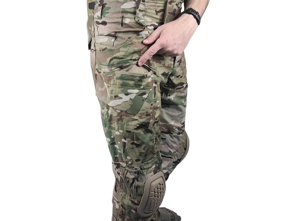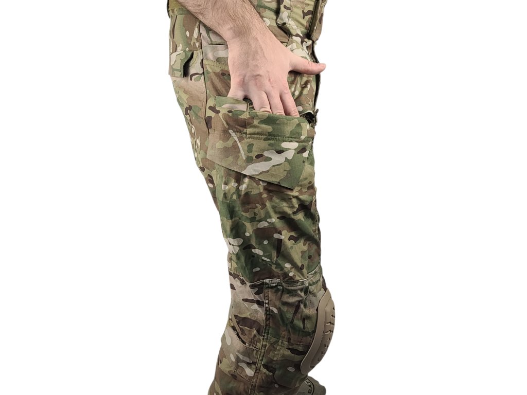Bojové kalhoty s integrovanými chrániči kolen. Kalhoty jsou vyrobeny ze speciální ripstop tkaniny VTX. Tkanina VTX je velice odolná a tenká díky vláknům T420 invista. Elastické vlákna umožňují plnou pohyblivost. Nizkoprofilové kapsy (2 na ruce, 2 na zip na přední straně stehen, 2 na velcro na boku stehen, 2 na velcro vzadu a 2 na zip na lýtka, 3 kapsičky na nůž). Stahování nohavic a pasu pomocí velcra. Poutka na uchycení vybavení. Kalhoty jsou včetně chráničů kolen G4.