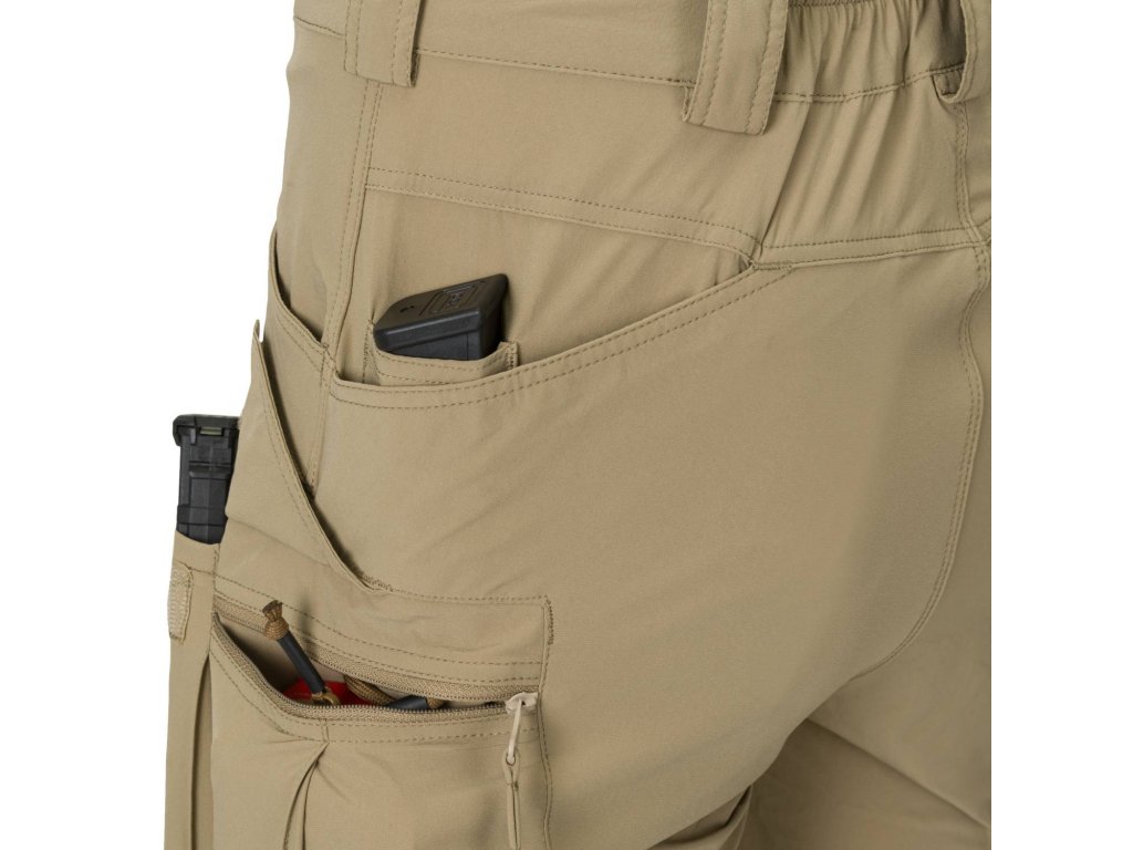 Kraťasy mají celkem osm kapes, takže poskytují dostatek prostoru, abysto mohli mít u sebe vše potřebné. Klasické boční kapsy pohodlně pojmou vaše doklady, mají také okraje zesílené dvojitou porcí látky, nemusíte se tedy obávat prodření při přenášení kapesních nožů. Zadní kapsy jsou otevřené, poradí si s peněženkou, malým snackem a obsahují malou kapsičku na pistolové zásobníky. Na stehnech jsou dvě prostorné cargo kapsy doplněné o další dvě kapsy uzavíratelné suchým zipem, velikostně do nich padnou zásobníky do pušky M4. Všechny kapsy jsou uvnitř tvořeny síťovinou. Kraťasy jsou díky dobré konstrukci a prodyšnosti skvělou volbou na cesty v teplejším podnebí.