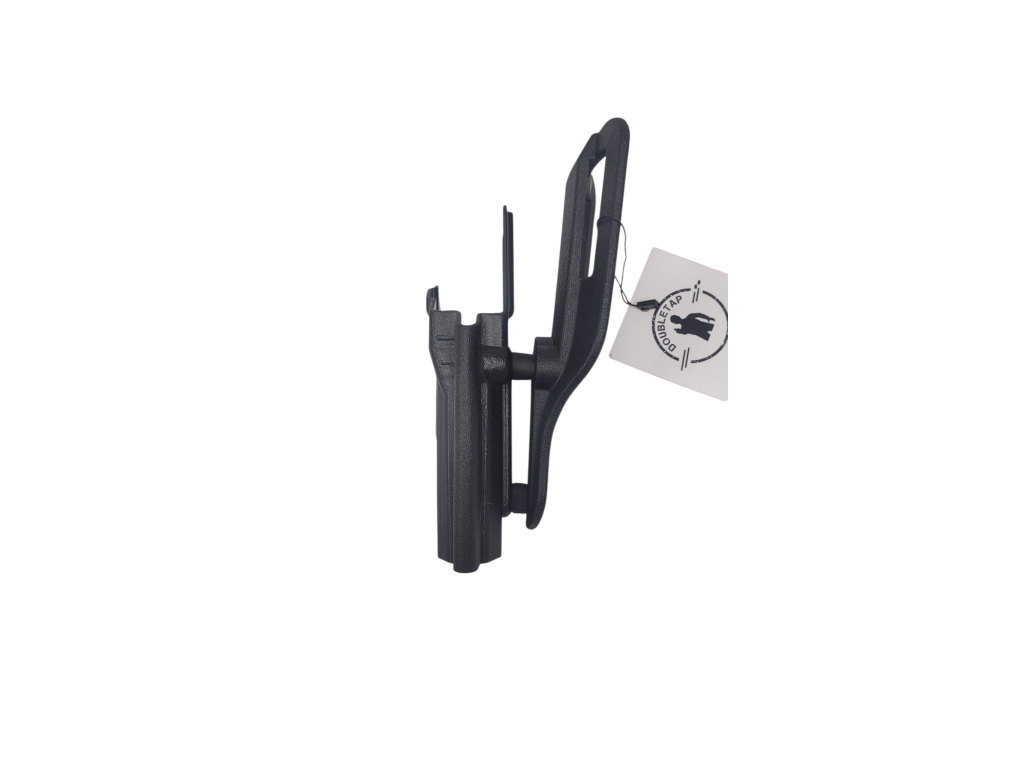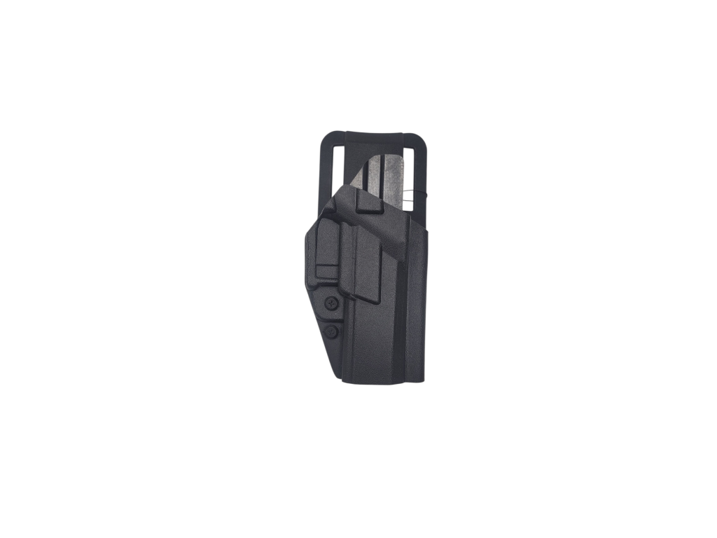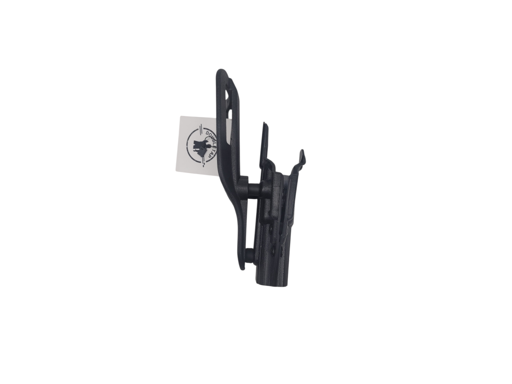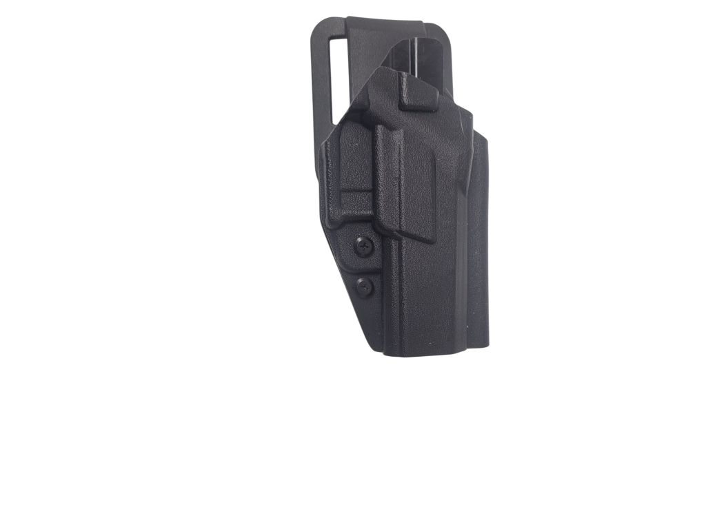 Pouzdro je na dropoff platformě na opasek. Pouzdro je typu OWB. Umístění šroubů pro kompatibilitu s QLS. Šrouby pro nastavení síly samosvoru. Kydex pouzdra má tloušťku 2,4mm.