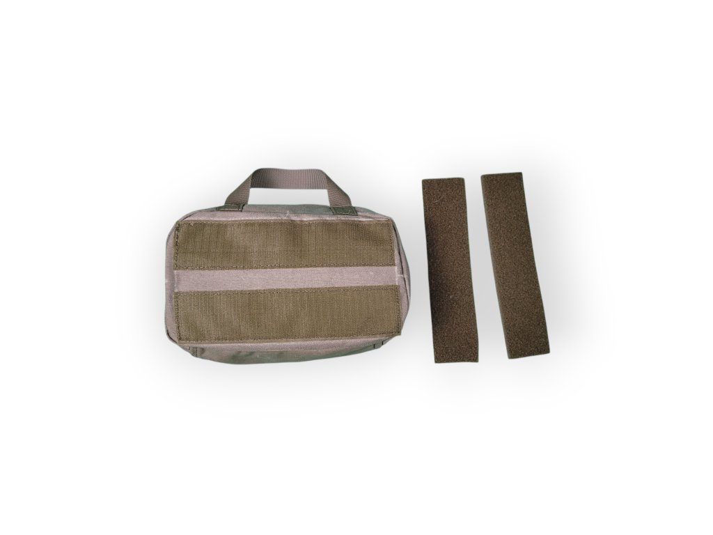 Pouzdro vyrobeno z cordury 500D a víko je tvořeno síťovinou nebo vinyl prúhledným materiálem - výběr varianty níže. Na zadní straně pouzdra jsou 2 pruhy velcro hook pro připevnění k velcru v batozích nebo velcro panelech. K velcru je dodáváno i krytí pro možnost používání bez upnutí (auto, planoboxy, kufry atd.). Madlo v horní části slouží k rychlému odtržení pouzdra od velcra nebo pro přenášení. Zip je tak aby se víko dalo celé odklopit a jsou zde 2 jezdce pro rychlé rozepnuti které ocení všichni co pouzdro použijí při organizaci TCCC vybavení. Na jezdcích jsou tahátka s cordem pro perfektní úchop i v rukavicích. Na přední straně je pás velcra pro umístění označení nebo nášivky.
